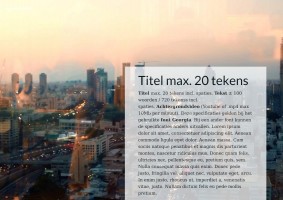 Korte uitleg onder de titel  80 - 120 tekens incl. spaties, logo (png, jpg) minimaal  600px. Achtergrond foto (jpg/png) liggend formaat minimaal 1700px breed.  deze tekst linkt naar de eerste pagina van het magazine